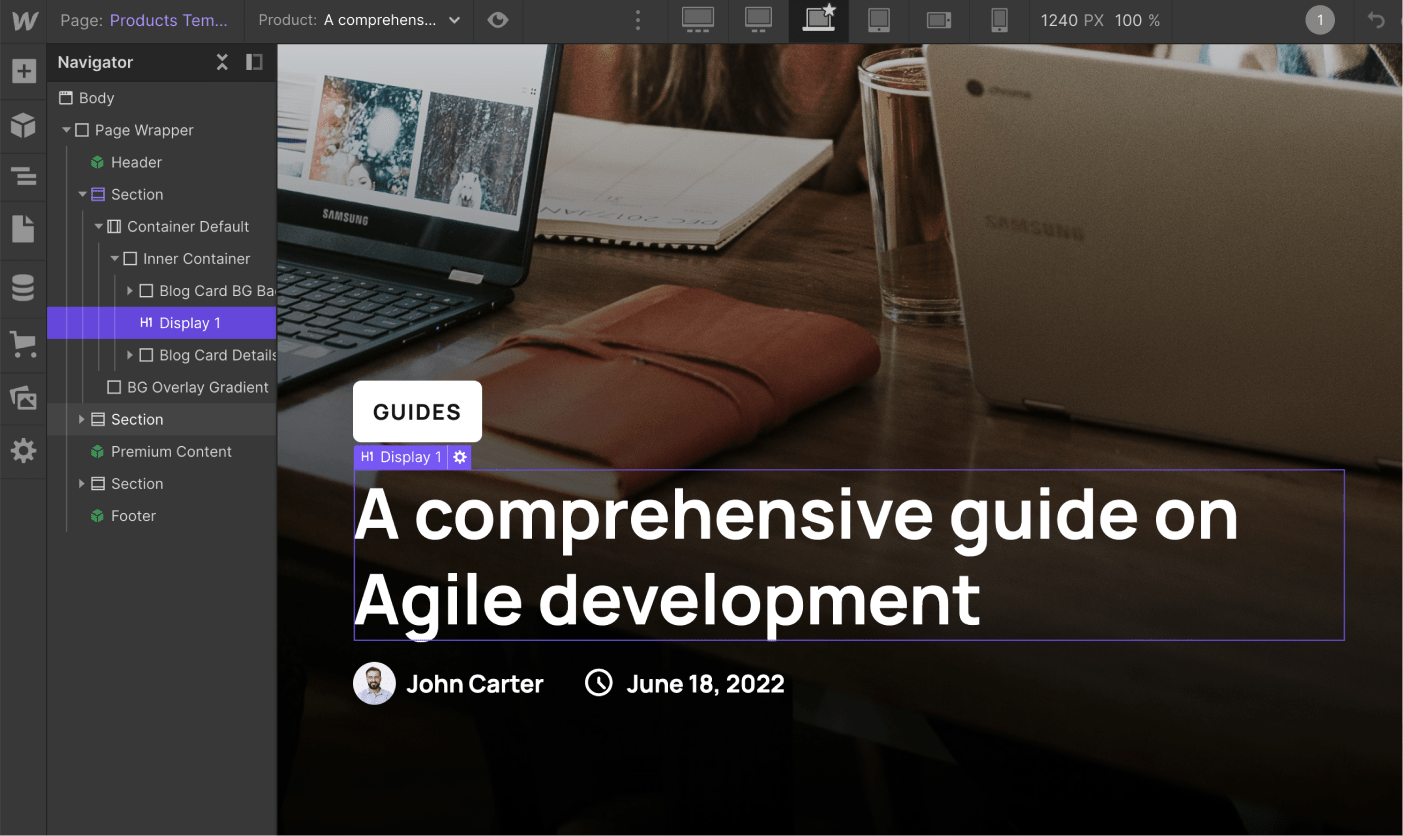 Everytime you make a change (for example, you create a new section design), it's a good practice to go to your Viewport top navigation and see how it looks on Tablet and Mobile.