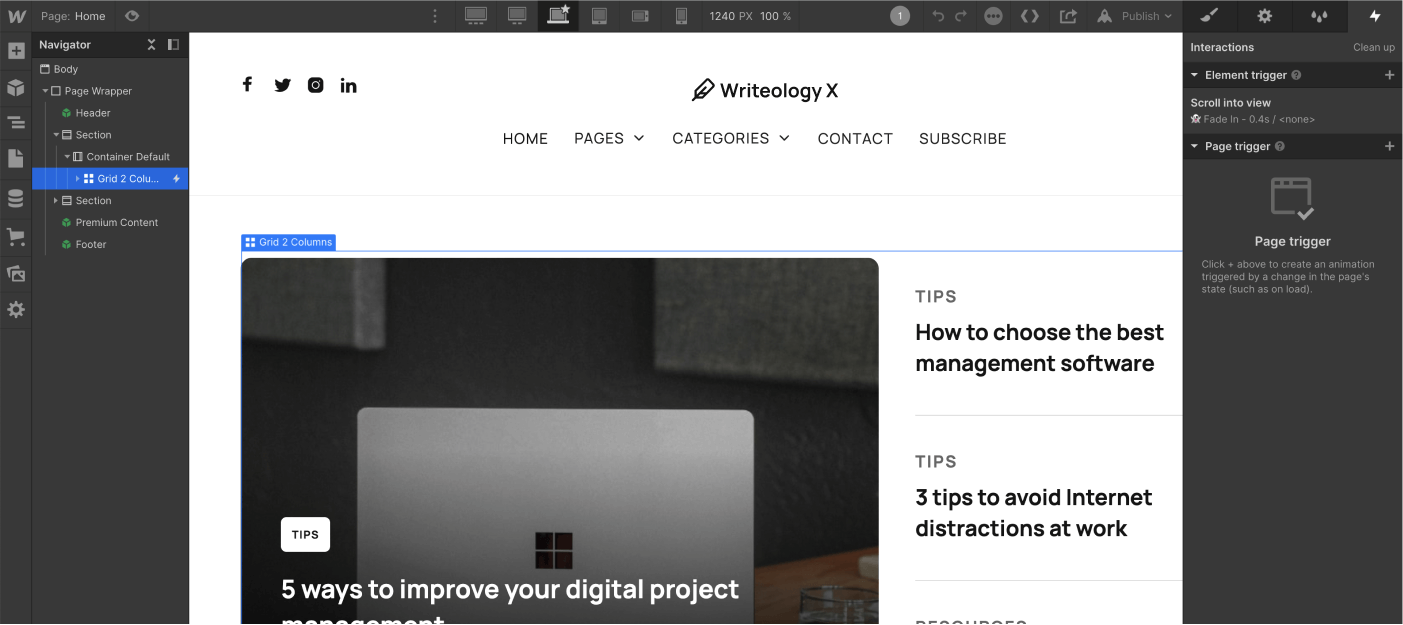 As you could see above, Writeology X was built on Webflow using the best practices to make it very easy for you to edit the template and customize it to your needs.